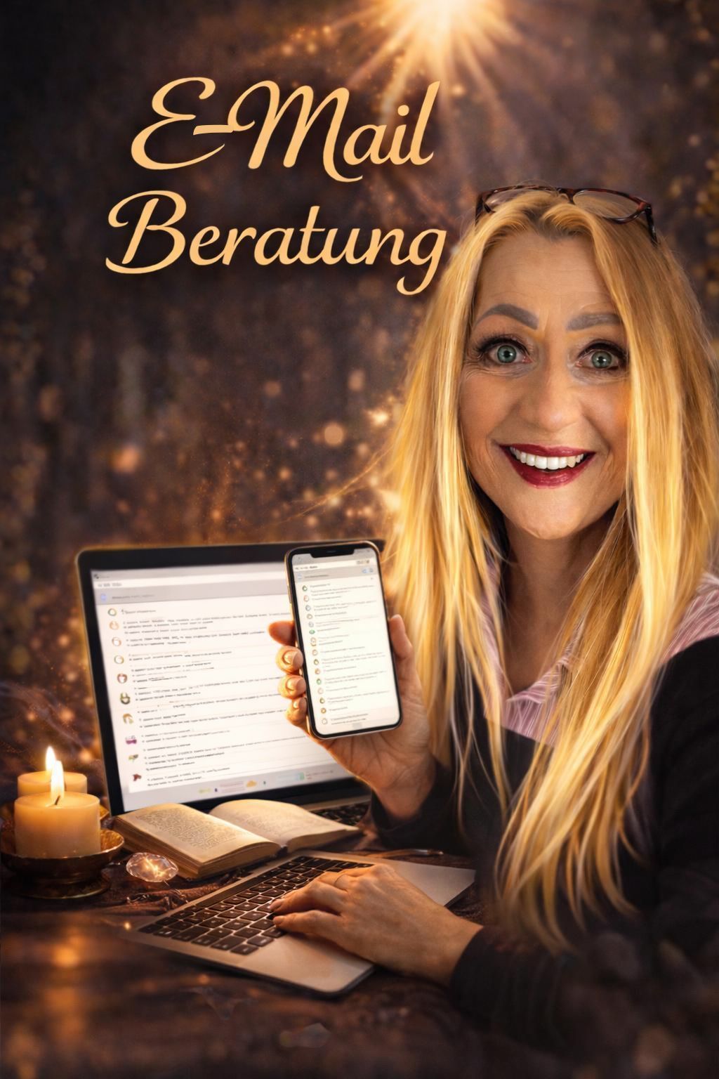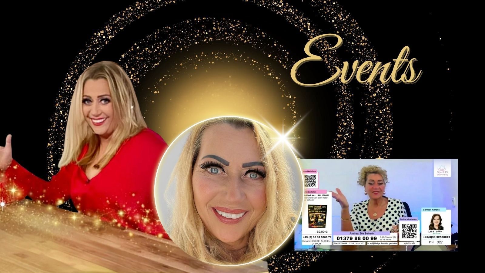 - in meinen regelmäßigen TV Sendungen, im Teleshop mit meinen ausgewählten Produkten und in öffentlichen Formaten verbinde ich Klarheit, Präsenz und seherische Wahrnehmung.